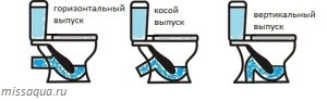 Выпуск – это сливное отверстие, подключаемое к канализационной трубе. Оно может быть выполнено в трех вариантах. Различают горизонтальный, вертикальный и косой выпуск. Выбор конкретного типа слива зависит от имеющейся в вашем доме канализационной системы.