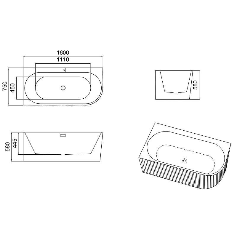- Расположение перелива: по центру