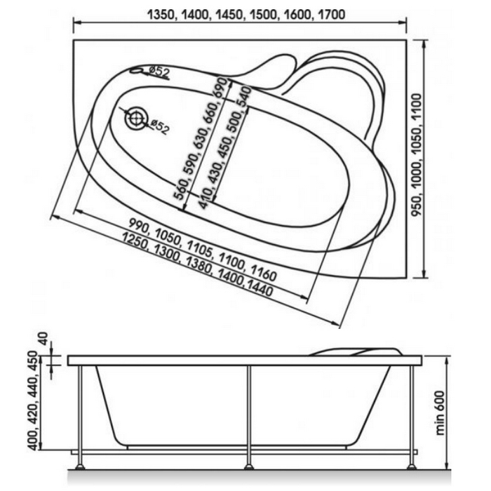 Глубина ванной - 40 см