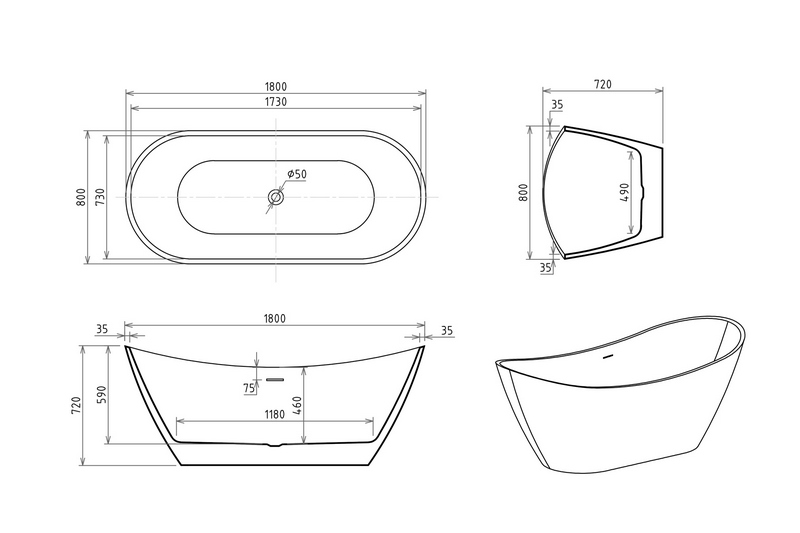 Комплектация: -ванна; -каркас; -слив-перелив Click Clack (белый, черный, хром или золотой на выбор)