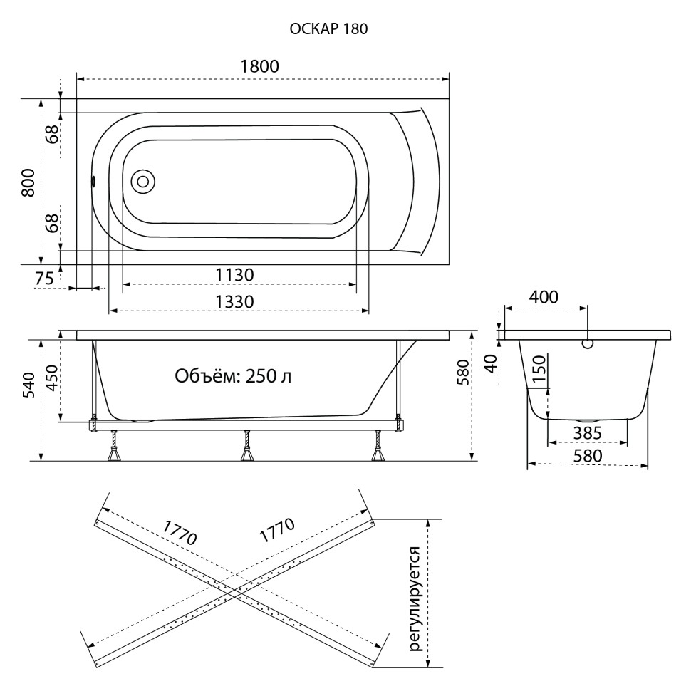 Акриловая ванна TRITON Оскар 180