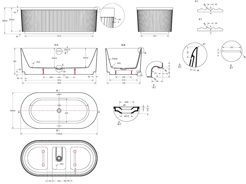 Ванна акриловая Vincea VBT-709-1700MG, 1700*800*585, цвет серый/белый, щелевой перелив, слив белый, , шт