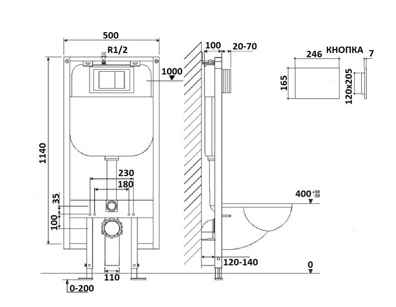 - Монтажная высота: 1120 мм