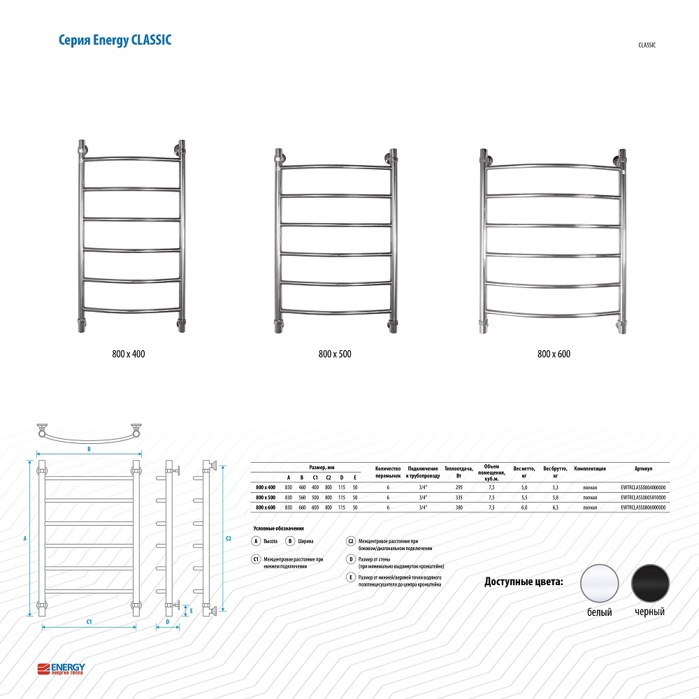 Полотенцесушитель водяной Energy Classic 800x400