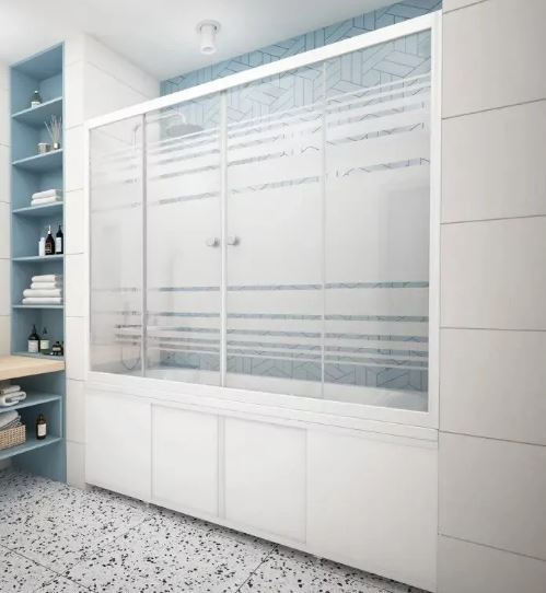 - Шторка на ванну 2-х створчатая раздвижная из стекла шириной 149см.