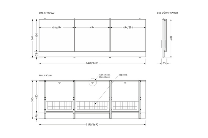 Универсальный экран под ванну Метакам 3 двери 150
