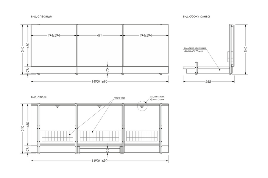 Универсальный экран под ванну Метакам 3 двери с ящиком 170
