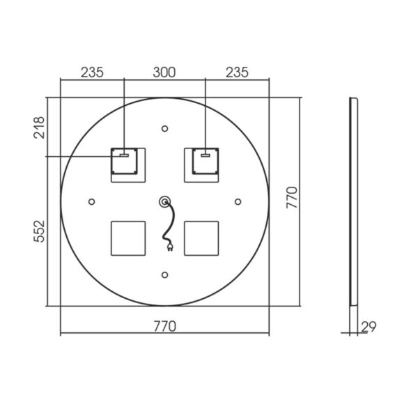 - Зеркало LED VLM-2G770 770x770 c сенсорным выключателем и диммером